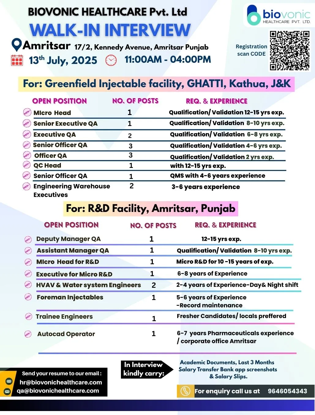 🔬 Openings for R&D Facility – Amritsar, Punjab
