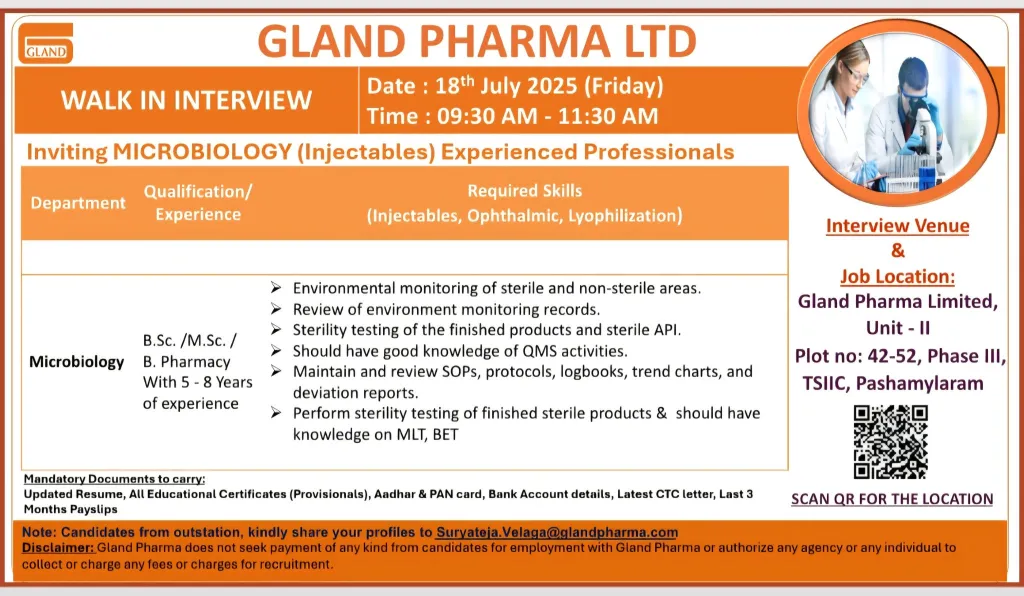 🚨 WALK-IN INTERVIEW – MICROBIOLOGY (Injectables)