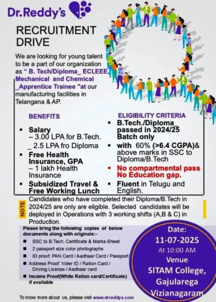 Here’s your chance to launch your career with one of India’s leading pharmaceutical giants — Dr. Reddy’s Laboratories!